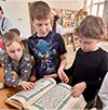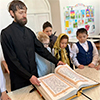 а уроке, посвященном дню Православной книги, дети посмотрели презентацию об истории создания славянской азбуки и книгопечатания на Руси, отвечали на вопросы викторины, рассмотрели Новый Завет на церковнославянском языке, а также принесли на выставку свои завершенные работы- самодельные книжки: «Ветхий Завет» и «Подготовительные недели Великого Поста», которые раскрашивали с начала учебного года. Подробно >>> |