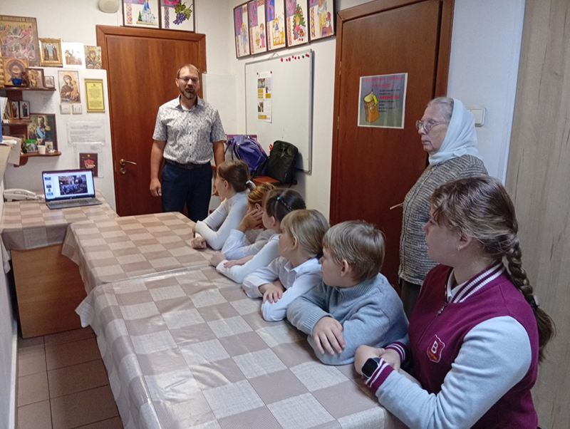 26 сентября 2025 г. 13 сентября в детской воскресной школе храма Божией Матери «Целительница» состоялся урок Мужества. Учитель Кислухин Андрей Владимирович рассказал о специальной военной операции, о том, что война имеет духовное основание.