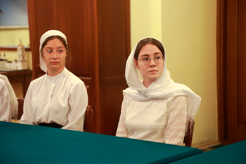 По традиции в заключение встречи владыка вручил первокурсницам Закон Божий.