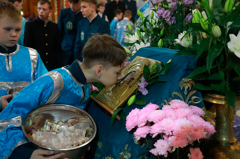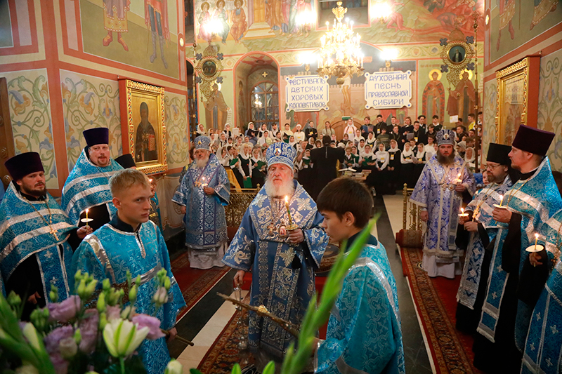 5 ноября 2025 г. 4 ноября 2025 года, в праздник Казанской иконы Божией Матери, митрополит Тобольский и Тюменский Димитрий, епископ Ялуторовский Серапион и епископ Фома (Демчук) совершили Божественную литургию в Софийско-Успенском кафедральном соборе Тобольского кремля, а накануне – Всенощное бдение. Богослужебные песнопения исполнил сводный хор детских коллективов, прибывших на фестиваль “Духовная песнь Православной Сибири”.