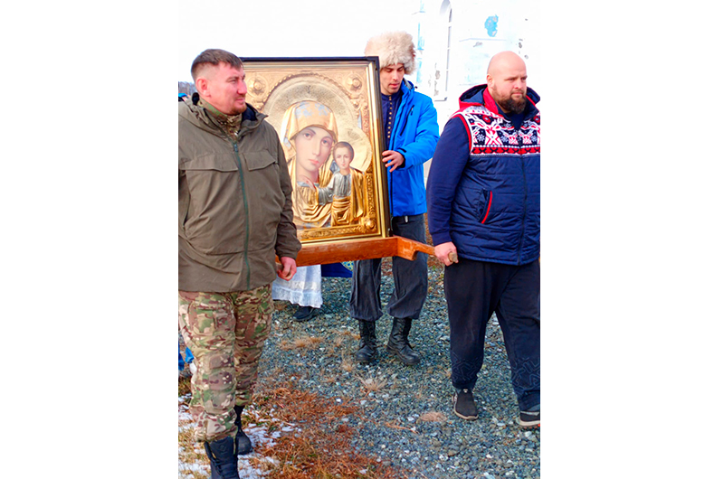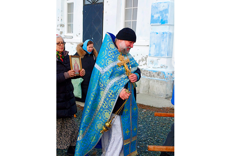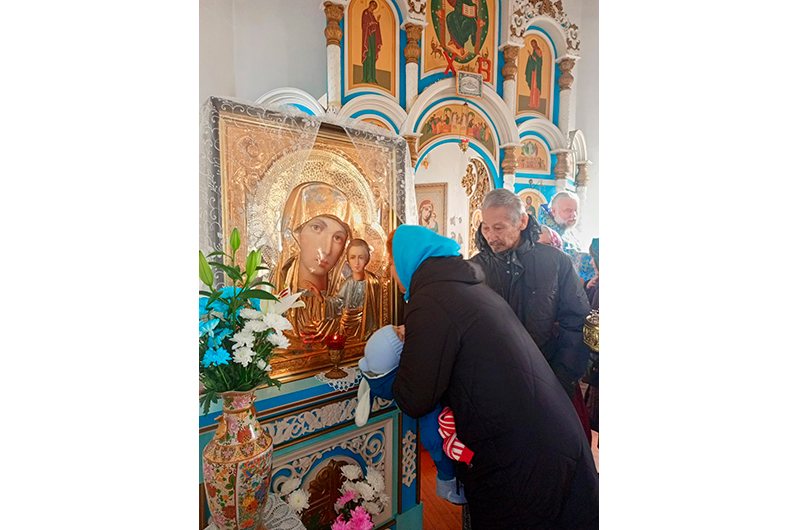 Настоятель протоиерей Сергий Рыбакин привозит певчих, начинается Литургия. «Заступница усердная, Мати Господа Вышнего, за всех молиши Сына Твоего Христа Бога нашего и всем твориши спастися», - эти слова праздничного тропаря не оставляют сомнения в сердцах верующих: слышит Божия Матерь мольбы людские, заступится, принесет желаемое спасение. В храме молятся жены и матери участников Специальной военной операции, а в Алтаре батюшке прислуживает в военной форме с медалями на груди боец, пришедший в очередной отпуск. Своей чередой идут Таинства исповеди, Причастия. К Чаше благоговейно и сосредоточенно идут все! На Крестный ход решило взглянуть с утра прятавшееся за тучками солнышко, да и задержалось: осветило молебен, прикладывание к иконе Божией Матери, окропление настоятелем верующих святой водой, фотографирование участников торжества на храмовом крыльце.