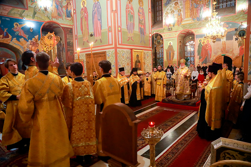 17 ноября 2025 г. 16 ноября 2025 года, в Неделю 23-ю по Пятидесятнице, митрополит Тобольский и Тюменский Димитрий совершил Божественную литургию в Софийско-Успенском кафедральном соборе Тобольского кремля, а накануне – Всенощное бдение. За богослужением молились духовенство собора, преподаватели и учащиеся семинарии, Тобольской православной гимназии и воскресной школы храма преподобного Серафима Саровского города Тюмени.
