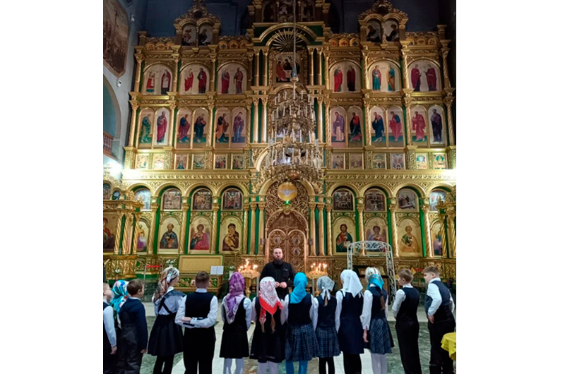 Отец Сергий очень доступно и увлекательно рассказал и об устройстве православного храма, и о том, что символизируют иконостас, купола, как расположены приделы, как устроена жизнь в монастыре, объяснил значение колокольного звона. Затем он с большим терпением и вниманием ответил на все вопросы, которые возникали у детей и родителей.