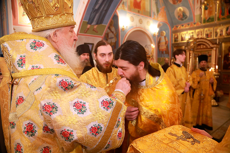 На малом входе правом ношения наперсного креста был удостоен эконом монастыря иеромонах Никон (Ильсибаков).