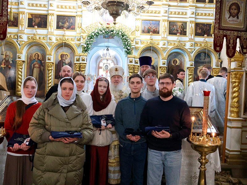 Затем Архипастырь освятил манишки, футболки и паспорт миссионера для участников миссионерского отдела Тюменского благочиния. Было сделано общее фото.