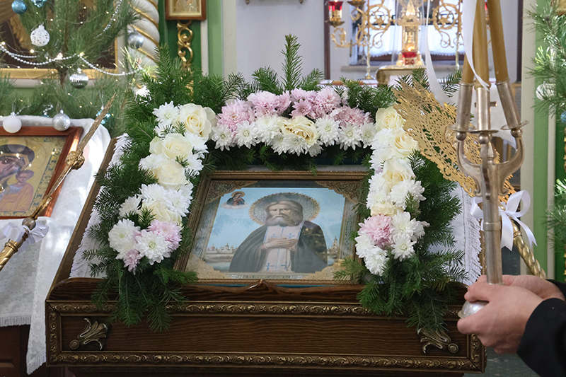 По окончании Литургии духовенство совершило молебное пение перед иконой преподобного Серафима Саровского. Затем Глава Тобольской митрополии обратился к молящимся в храме с архипастырским словом.