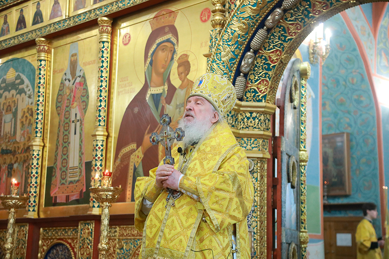 В конце богослужения состоялся благодарственный молебен, за которыми вознесли сугубую молитву за предстоятеля Русской Православной Церкви Святейшего Патриарха Московского и всея Руси Кирилла.
