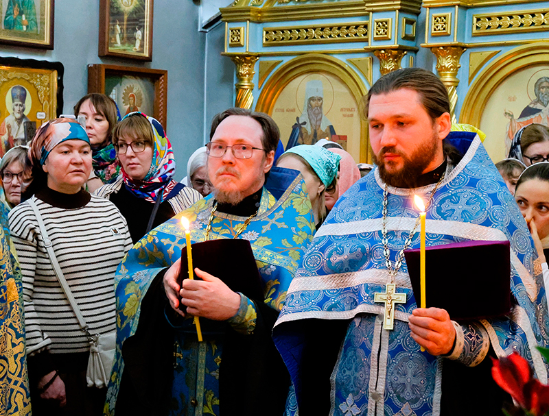 Богослужебные песнопения исполнили хор Тюменского духовного училища – регент священник Александр Вишняков; мужской и приходской хоры храма «Утоли моя печали».