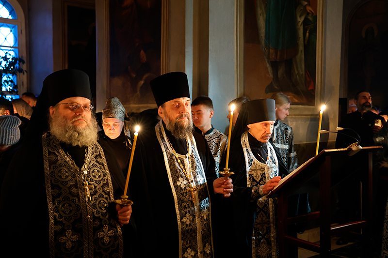 26 февраля 2026 г. 26 февраля 2026 года, в четверг 1-й седмицы Великого поста, митрополит Тобольский и Тюменский Димитрий совершил великое повечерие с чтением великого покаянного канона преподобного Андрея Критского в Свято-Троицком мужском монастыре г. Тюмени. Его Высокопреосвященству сослужили архимандрит Зосима (Горшунов), и.о. наместника Свято-Троицкого мужского монастыря и духовенство монастыря.