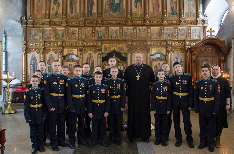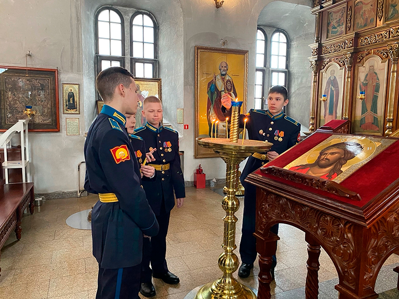 2 марта 2026 г. 24 февраля 2026 г. кадеты под руководством преподавателя русского языка и литературы Ольги Олеговны Смолиной с экскурсией побывали в Свято-Никольском храме, а затем приняли участие в мероприятии, посвящённом Дню защитника Отечества в детском саду № 146 г. Тюмени. Святитель Николай является покровителем Военно-Морского флота. Тюменский храм, названный в честь него, по форме напоминает корабль. Настоятель иерей Евгений Сбитнев - отец двух кадет училища - рассказал о сходстве службы военных и служении священников, ведь и те, и другие должны быть дисциплинированными, стойкими, целеустремленными.