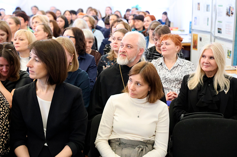 После Пленарной части семинар продолжил свою работу в двух секционных заседаниях, где ведущие поделились практическим опытом проведения мероприятий в рамках реализации взаимодействия Церкви и органов образования. Секция «Духовно-нравственное воспитание в современном образовательном пространстве», которую возглавил митрополит Екатеринбургский и Верхотурский Евгений, объединила директоров образовательных организаций г. Тюмени. Вторую секцию для завучей и педагогов тюменских школ провела Поликарпова Татьяна Владимировна, руководитель сектора основ православной культуры (ОПК) Синодального отдела религиозного образования и катехизации Русской Православной Церкви, автор четырёх учебников для начальной школы по Семьеведению, входящих в Федеральный перечень одобренных Министерством Просвещения. Тема работы секции – «Конструирование современного урока ОПК». В завершение встречи Татьяна Владимировна рекомендовала автору курса «История Православия в Сибири» иеромонаху Сергию (Завгороднему) принять участие в конкурсе «Клевер ДНК» 2027 г.