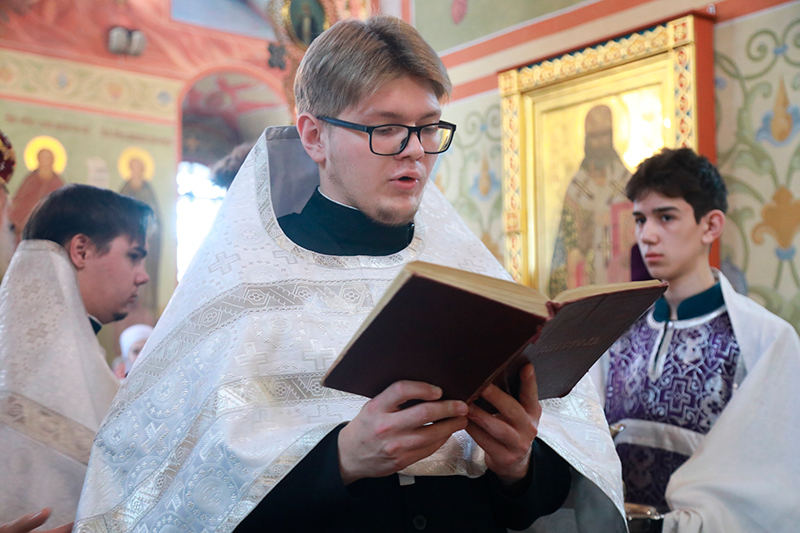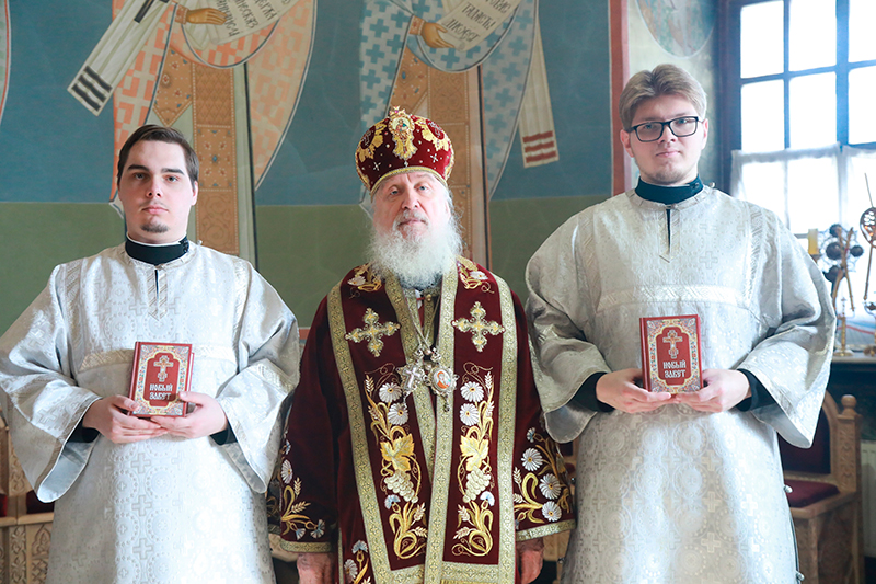 За Божественной литургией митрополит Димитрий совершил хиротесии во чтецов над студентами 4 курса семинарии Александром Сотниковым и Алексеем Янченко.