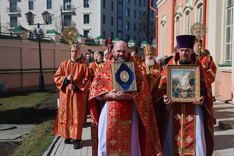 По окончании Литургии состоялся крестный ход вокруг храма.