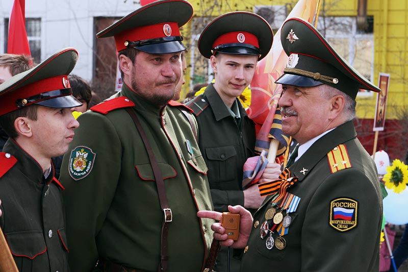 В 9 часов возле Знаменского собора собрались православные верующие г. Тюмени, чтобы принять участие в праздничном шествии в честь Великой Победы. Около 10 часов колонна выстроилась на ул. Хохрякова рядом с Центральной площадью. Около 11 часов колонна прошла по улицам Хохрякова, Первомайской, Республики. Во главе колонны шли казаки Сибирского казачьего войска, кадетские корпусы, за ними – колонна православной молодежи молодежи, прибывшей на пасхальные молодежные встречи в Тюмень с Высокопреосвященнейшим Архиепископом Димитрием, затем шли представители православных общественных организаций г. Тюмени, «Сибирь молодая православная» и остальные верующие.