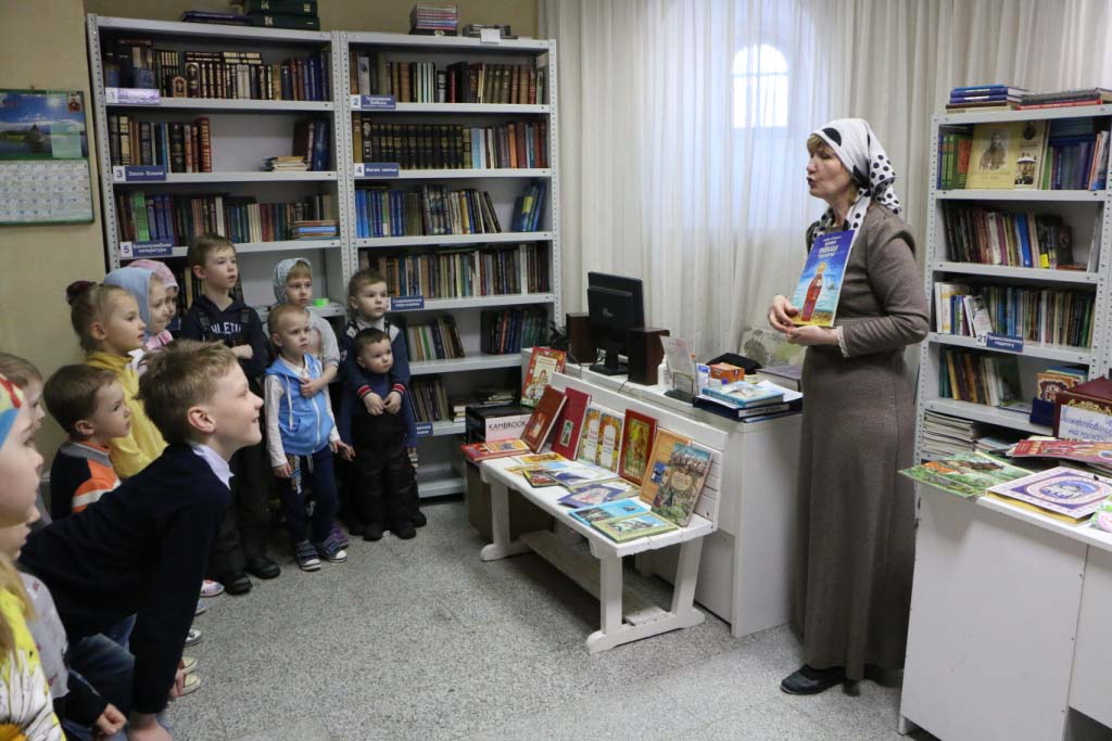 Книги при храме - это книги православных писателей, изданные в православных издательствах. Первая печатная книга «Апостол появилась в 1564 году. И наша экскурсия в библиотеку посвящена этой дате. Дети рассматривали Книги с описанием житий Святых Отцов, пересказанные для детей, Святое Евангелие. Библию, огромную книгу, даже подержали в руках. Книги добрые, назидательные - наши помощники и советчики. Какие книги мы читаем - такими и вырастем людьми.