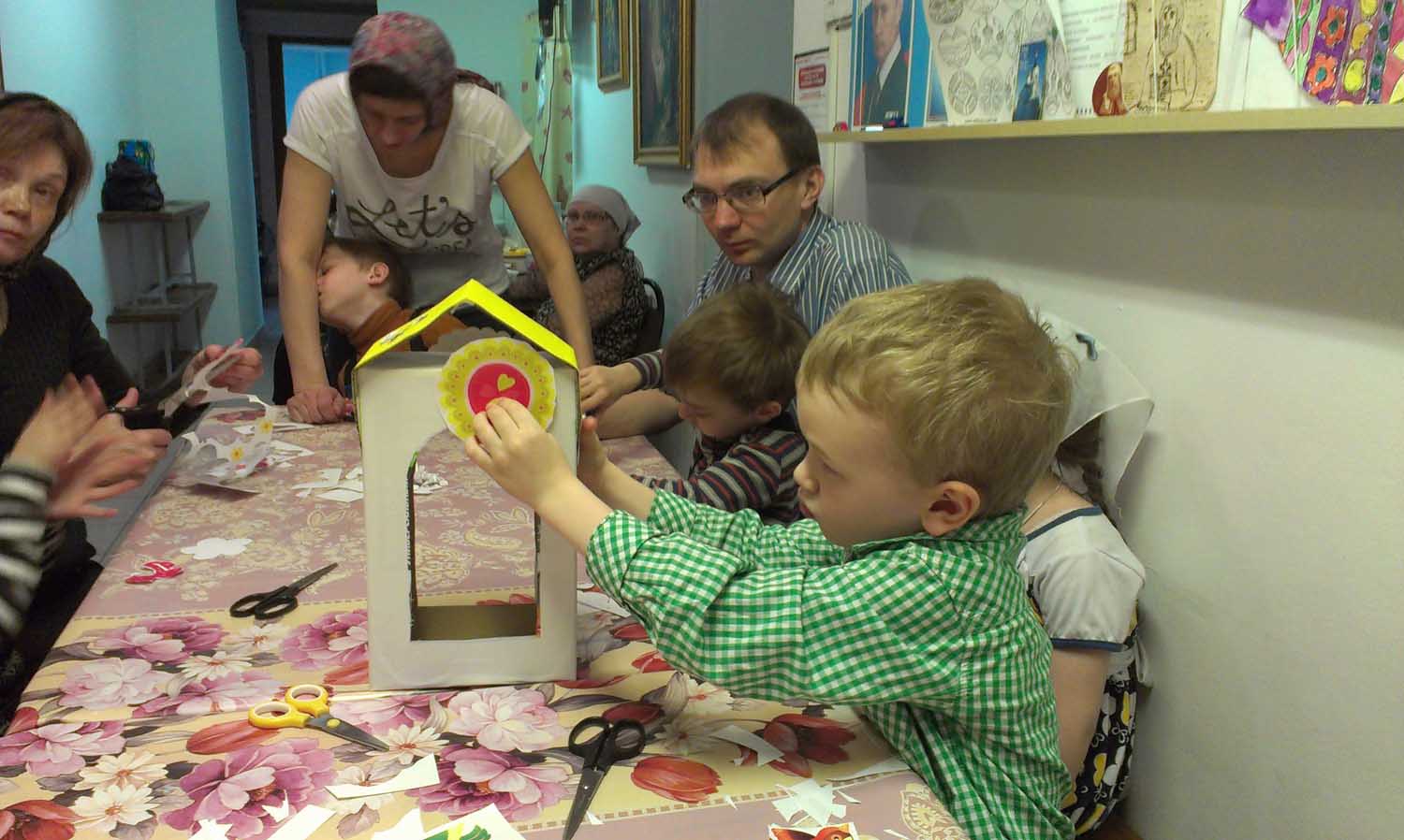 Малыши не только узнали о празднике Благовещения Пресвятой Богородицы, но и смогли поучаствовать в коллективной работе по созданию птичьей кормушки. Цветная бумага, картон, разноцветные картинки, клей, ножницы... и немного фантазии. И вот к концу занятия готова яркая кормушка.