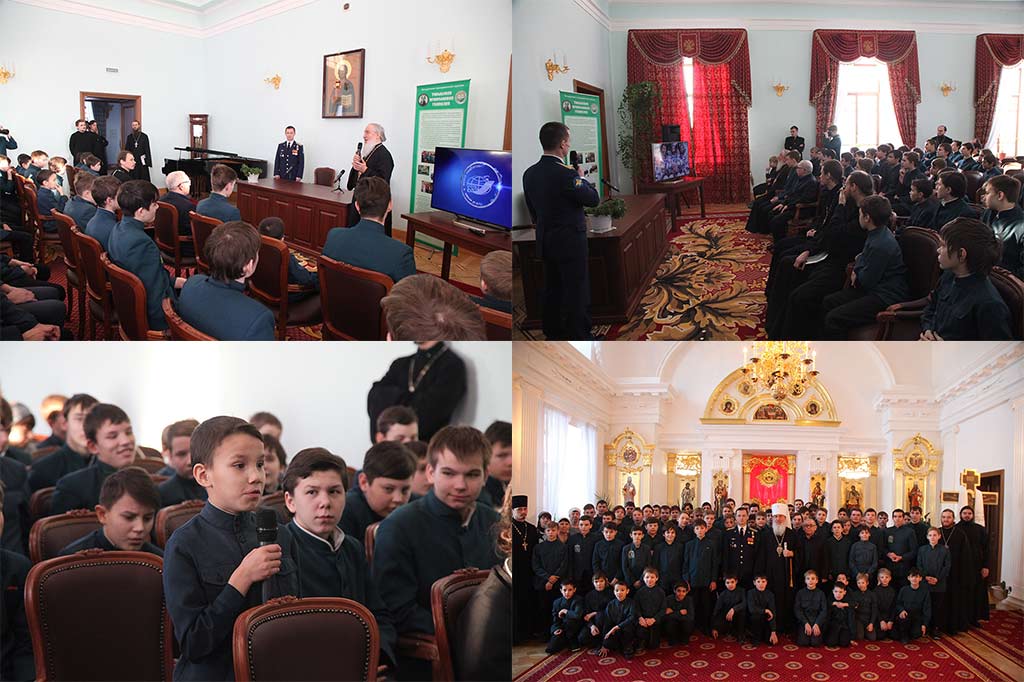 Весь рассказ Сергея Николаевича о его необычной профессии заинтересовал ребят и вызвал множество вопросов о космосе и службе в авиационных силах РФ. По окончании встречи, хор Тобольской православной гимназии под управлением иерея Александра Вишнякова исполнил для всех собравшихся музыкальное произведение Александра Александровича Алябьева на слова Петра Павловича Ершова, уроженцев Тобольской губернии.