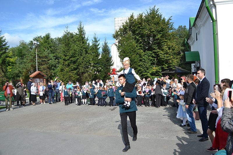 После богослужений, получив благословление на новый учебный год, 1,9,11-е классы дружно пошли на торжественную линейку, посвящённую дню Знаний, а остальные ребята ушли на классные часы на тему «Уроки мужества».