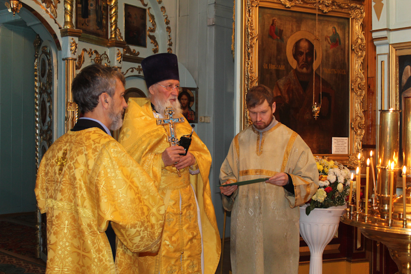В дни Рождественского поста святитель Николай для каждого из нас является примером и наставником Богоугодной жизни. В нашем храме имеется чудотворная икона святителя Николая и в честь него назван придел Никольским. Сегодня здесь престольный праздник, который отмечается ежегодно вот уже 75 лет. Тысячи прихожан получают духовную помощь от святителя Николая и благодарят его. Об этом свидетельствуют постоянно горящие свечи и молитвенники, стоящие перед иконой Святителя. Никто не уходит не утешенным, все получают духовное удовлетворение, покой и радость на душе.