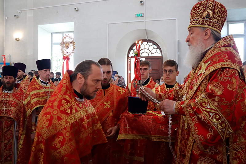 28 апреля 2022 г. 28 апреля 2022 года, в четверг Светлой седмицы, митрополит Тобольский и Тюменский Димитрий возглавил Праздничное богослужение в Благовещенском соборе г. Тюмени. Его Высокопреосвященству сослужило духовенство Тюменского благочиния. Песнопения исполняли хор Тюменского духовного училища и хор Благовещенского собора. На малом входе указом Святейшего Патриарха Московского и всея Руси Кирилла за усердное служение Святой Церкви ряд клириков Тобольско-Тюменской епархии к празднику Святой Пасхи были удостоены богослужебно-иерархических наград: протоиерей Вячеслав Горшков, настоятель храма Успения Пресвятой Богородицы с. Успенка — удостоен права ношения креста с украшениями; протоиерей Ростислав Петров, клирик Свято-Никольского храма г. Тюмени — удостоен права ношения палицы; иерей Евгений Пуртов, настоятель храма в честь святителя Николая Чудотворца п. Боровский — удостоен права ношения палицы; Указом митрополита Тобольского и Тюменского Димитрия за усердное служение Святой Церкви ряд клириков Тобольско-Тюменской епархии к празднику Святой Пасхи были удостоены богослужебно-иерархических наград: иерей Антоний Сбитнев, клирик храма Всех Святых г. Тюмени — удостоен права ношения наперсного креста; иерей Константин Пирожников, настоятель храма Всех Святых в земле Российской просиявших г. Тюмени — удостоен права ношения наперсного креста; иерей Александр Вишняков, клирик Свято-Троицкого мужского монастыря г. Тюмени — удостоен права ношения камилавки. По окончании богослужения состоялся Крестный ход, после которого митрополит Тобольский и Тюменский Димитрий обратился с архипастырским словом и поздравил с праздником Пасхи.     Пресс-служба Тобольской митрополии