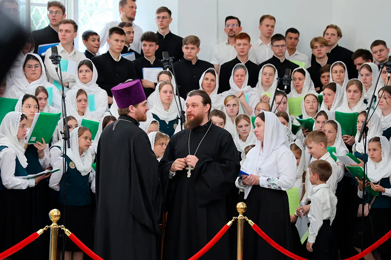 11 июня 2023 г. 11 июня 2023 года, Святейший Патриарх Московский и всея Руси Кирилл совершил чин Великого освящения Благовещенского собора в г. Тюмени. Его Святейшеству сослужили: митрополит Воскресенский Дионисий, Управляющий делами Московской Патриархии; митрополит Тобольский и Тюменский Димитрий, Глава Тобольской митрополии; митрополит Ханты-Мансийский и Сургутский Павел; архиепископ Салехардский и Новоуренгойский Николай; епископ Ишимский и Аромашевский Тихон; епископ Ялуторовский Серапион, викарий Тобольской епархии; архимандрит Алексий (Туриков), личный секретарь Святейшего Патриарха Кирилла; архимандрит Зосима (Горшунов), наместник Свято-Троицкого мужского монастыря г. Тюмени; протоиерей Андрей Сбитнев, благочинный Тюменского благочиния, настоятель храма Всех святых г. Тюмени; протоиерей Петр Егоров, благочинный Знаменского кафедрального собора г. Тюмени; духовенство Тобольской митрополии. Песнопения за богослужением исполняли: хор Тобольской духовной семинарии под управлением священника Максима Ильиных; хор Тюменского духовного училища под управлением священника Александра Вишнякова; образцовый хор девочек Тюменской православной гимназии под управлением П.В. Глазуновой; хор Благовещенского собора г. Тюмени под управлением О. В. Кокадеевой; хор Воскресной школы храма Архангела Михаила г. Тюмени под управлением Н. С. Егоровой, хор воскресной школы Благовещенского храма г. Тюмени под управлением М.Ф. Белозеровой. Сводным хором руководил священник Александр Вишняков. На богослужении присутствовали: Полномочный представитель Президента РФ в Уральском федеральном округе Владимир Владимирович Якушев, Губернатор Тюменской области Александр Викторович Моор, Глава города Тюмени Руслан Николаевич Кухарук, председатель Общественной палаты Тюменской области, сопредседатель Тюменского регионального объединения Всемирного Русского Народного собора Чеботарев Геннадий Николаевич, представители Правительства Тюменской области, благотворители храма. Также, за богослужением молились учащиеся Тюменской и Ялуторовской православных гимназий, воспитанники Воскресных школ Тюмени, участники миссионерской детской экспедиции «Славянский ход», благочестивые паломники и прихожане. Патриаршее богослужение транслировалось в прямом эфире на телеканалах «Союз», «Спас», «Тюменское время», а также на официальном сайте Русской Православной Церкви Патриархия.ru. Трансляцию богослужения комментировал пресс-секретарь Тобольской митрополии протоиерей Григорий Мансуров. Также, трансляция была выведена на большой экран, установленный перед храмом. На малом входе, Святейший Патриарх Московский и всея Руси Кирилл удостоил протоиерея Андрея Сбитнева, благочинного Тюменского округа служения Божественной литургии с отверстыми царскими вратами по «Иже Херувимы». По сугубой ектении, Святейший Владыка вознес молитву о Святой Руси. Проповедь перед Святым Причастием произнес иерей Александр Трифонов, директор Тюменской православной гимназии. По окончании богослужения, митрополит Тобольский и Тюменский Димитрий обратился к Святейшему Патриарху Московскому и всея Руси Кириллу со словами приветствия и благодарности за посещение Тобольской митрополии. В дар Святейшему Владыке была преподнесена икона Божией Матери «Абалакская