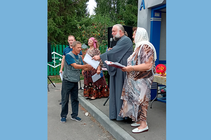 Староста Лидия Решетникова с помощницами от всей щедрой русской души накрыли в церковном дворе для гостей столы для братской трапезы, которую благодарные гости оценили, конечно же, очень высоко! Радостно прошел за церковной оградой творчески организованный жителями села концерт. Благотворители храма получили от настоятеля о. Сергия благодарственные письма за участие в подготовке храма к праздничному Богослужению. Также о. Сергий поблагодарил и всех прибывших на престольный праздник за оказанную честь.