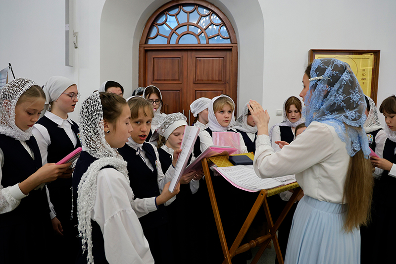 За богослужением песнопения исполняли: хор Благовещенского собора; хор регентской школы при ТДС; хор женских классов Тобольской православной гимназии.