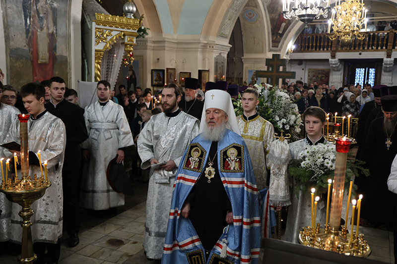 8 января 2024 г. 8 января 2024 года, митрополит Тобольский и Тюменский Димитрий возглавил Божественную литургию в Знаменском кафедральном соборе г. Тюмени.