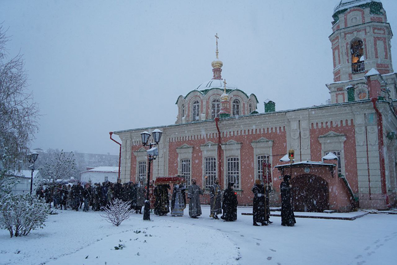 В Богородице-Рождественском женском монастыре было совершено богослужение с чином погребения Плащаницы и Крестный ход.