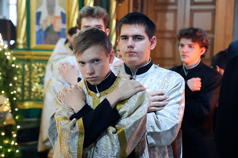 Богослужебные песнопения исполнил хор Тюменского духовного училища под управлением иерея Александра Вишнякова.