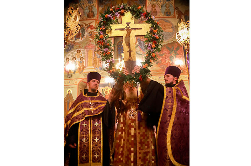 Накануне праздника, 26 сентября, в Софийско-Успенском соборе был совершено Всенощное бдение с чином Воздвижения Креста Господня, которое возглавил митрополит Тобольский и Тюменский Димитрий.