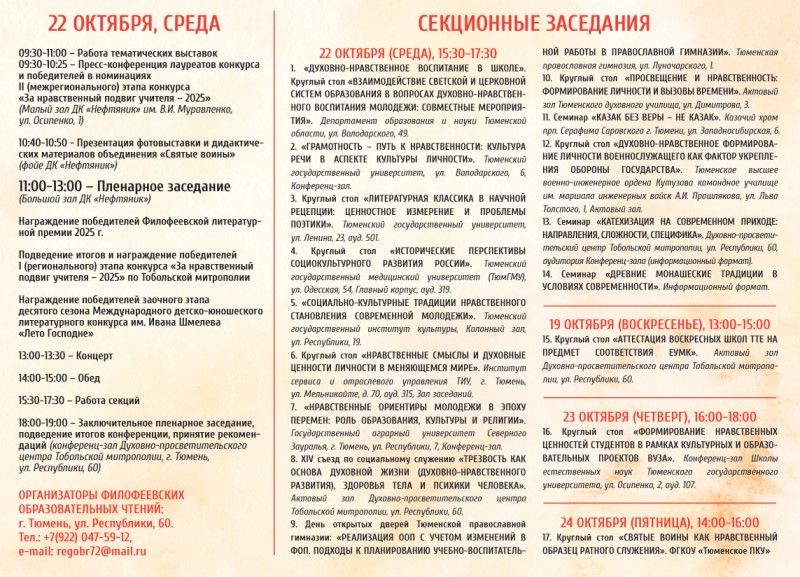 11:00 – пленарное заседание Филофеевских образовательных чтений (Большой зал ДК Нефтяник).