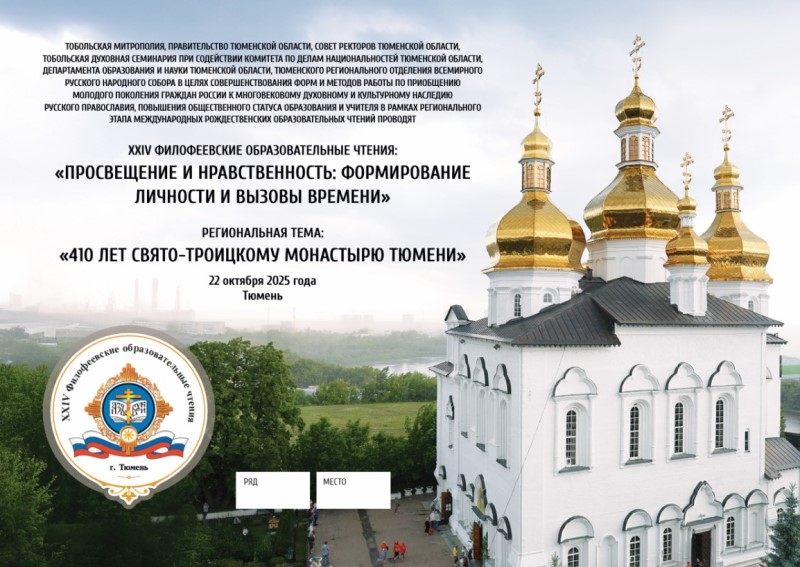 19 октября 2025 г. 22 октября 2025 года в ДК Нефтяник в Тюмени пройдут XXIV Филофеевские образовательные чтения на тему: «Просвещение и нравственность: формирование личности и вызовы времени». В рамках форума состоится награждение писателей-лауреатов Филофеевской литературной премии, а также пройдет вручение премии «За нравственный подвиг учителя». В 9:30 в малом зале ДК Нефтяник (ул. Осипенко, 1) пройдет встреча и пресс-конференция с победителями и экспертами Всероссийского конкурса «За нравственный подвиг учителя».