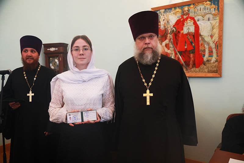 После состоялось вручение студенческих билетов поступившим студентам 1-х курсов семинарии, регентской и иконописной школ.