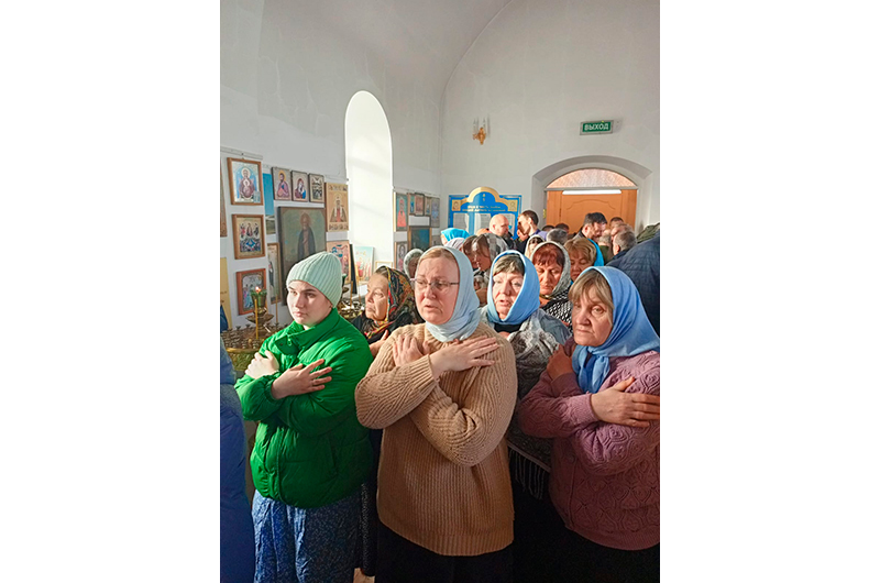 Настоятель протоиерей Сергий Рыбакин привозит певчих, начинается Литургия. «Заступница усердная, Мати Господа Вышнего, за всех молиши Сына Твоего Христа Бога нашего и всем твориши спастися», - эти слова праздничного тропаря не оставляют сомнения в сердцах верующих: слышит Божия Матерь мольбы людские, заступится, принесет желаемое спасение. В храме молятся жены и матери участников Специальной военной операции, а в Алтаре батюшке прислуживает в военной форме с медалями на груди боец, пришедший в очередной отпуск. Своей чередой идут Таинства исповеди, Причастия. К Чаше благоговейно и сосредоточенно идут все! На Крестный ход решило взглянуть с утра прятавшееся за тучками солнышко, да и задержалось: осветило молебен, прикладывание к иконе Божией Матери, окропление настоятелем верующих святой водой, фотографирование участников торжества на храмовом крыльце.
