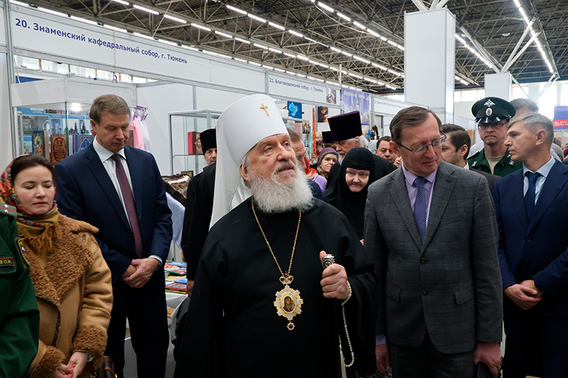 Затем Глава Тобольской митрополии ознакомился с представленными на выставке святынями, книгами, церковной утварью.