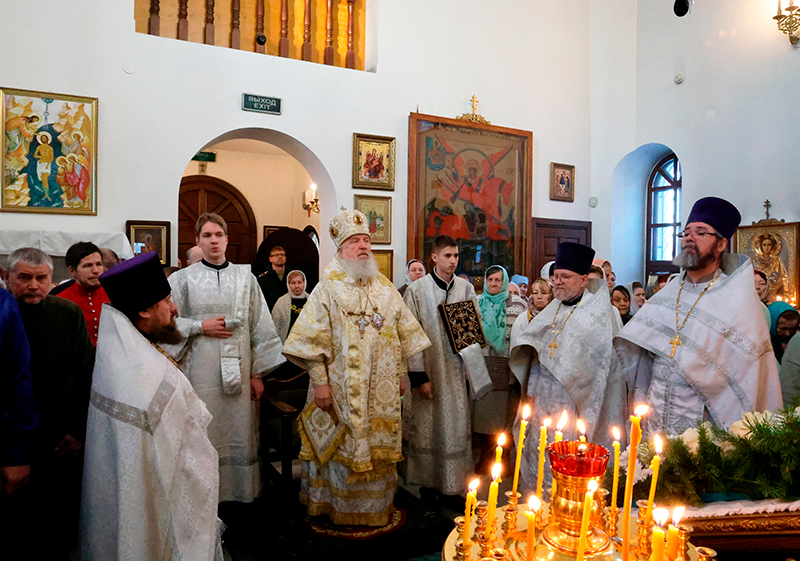 По окончании Литургии духовенство совершило молебное пение перед иконой преподобного Серафима Саровского. Затем Глава Тобольской митрополии обратился к молящимся в храме с архипастырским словом.