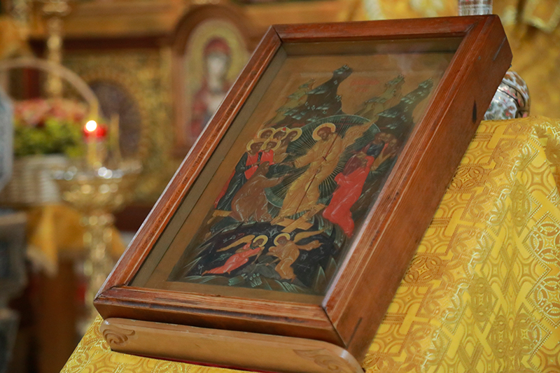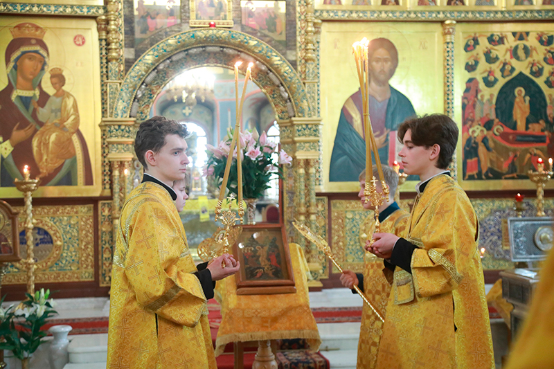 В конце богослужения состоялся благодарственный молебен, за которыми вознесли сугубую молитву за предстоятеля Русской Православной Церкви Святейшего Патриарха Московского и всея Руси Кирилла.