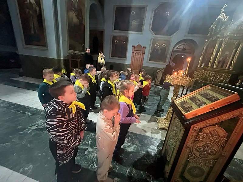 Затем перед юными экскурсантами выступил воспитанник воскресной школы при Свято-Троицком монастыре Иван Рябов, представив свою презентацию становления обители.