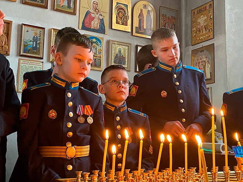 2 марта 2026 г. 24 февраля 2026 г. кадеты под руководством преподавателя русского языка и литературы Ольги Олеговны Смолиной с экскурсией побывали в Свято-Никольском храме, а затем приняли участие в мероприятии, посвящённом Дню защитника Отечества в детском саду № 146 г. Тюмени. Святитель Николай является покровителем Военно-Морского флота. Тюменский храм, названный в честь него, по форме напоминает корабль. Настоятель иерей Евгений Сбитнев - отец двух кадет училища - рассказал о сходстве службы военных и служении священников, ведь и те, и другие должны быть дисциплинированными, стойкими, целеустремленными.