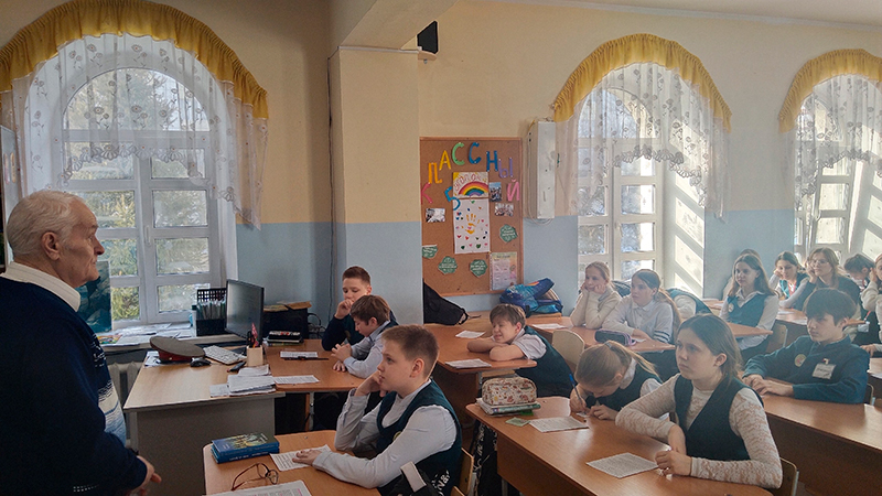 Виктор Геннадьевич обратил внимание ребят на исторический контекст, рассказав о том, как в разные периоды наше государство отстаивало свои границы.