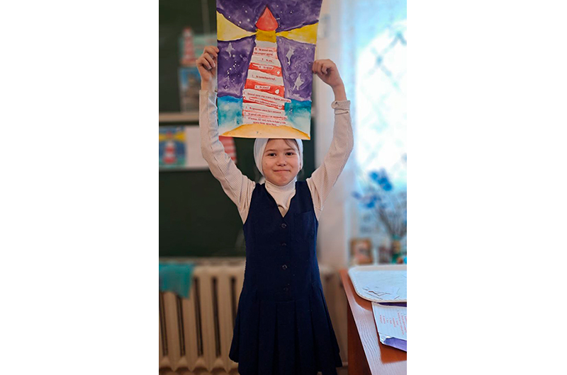 Нарисовали маленькие маяки - «Маяк спасения», на нем 10 красно-белых полосок, напоминающих о Заповедях.