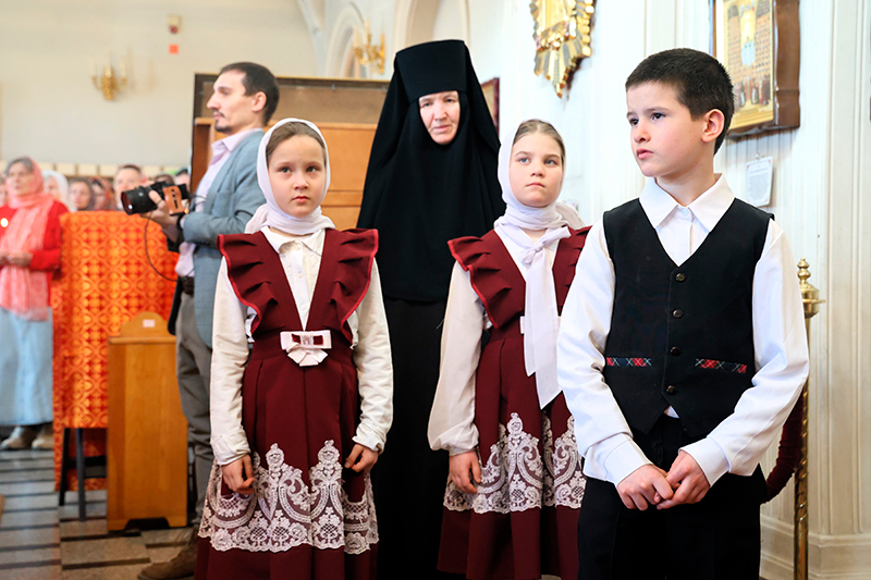В храме молилась игумения Нина (Схулухия), настоятельница Богородице-Рождественского женского монастыря с сестрами и детьми пансиона «Отрада».